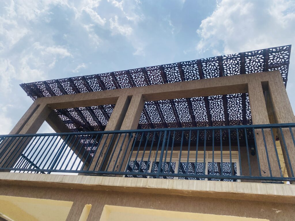 Precision fabrication and installation of bespoke decorative metal screening with organic motif design. The result transforms functional outdoor structures into distinctive architectural features that enhance property value while providing a practical shade solution.